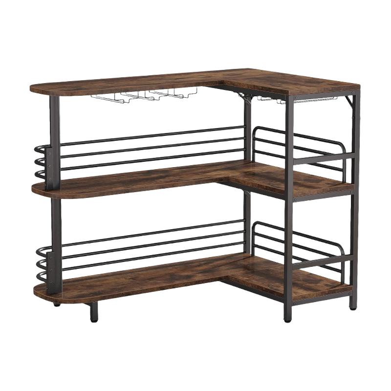 Tribesigns L-förmiger Bartisch, 3-stufiger Bistro-Tisch mit Regal, Weinregal und Glashalter, industrieller Eck-Küchentisch für Wohnzimmer, Küche, im Industrie-Design, rustikal Braun