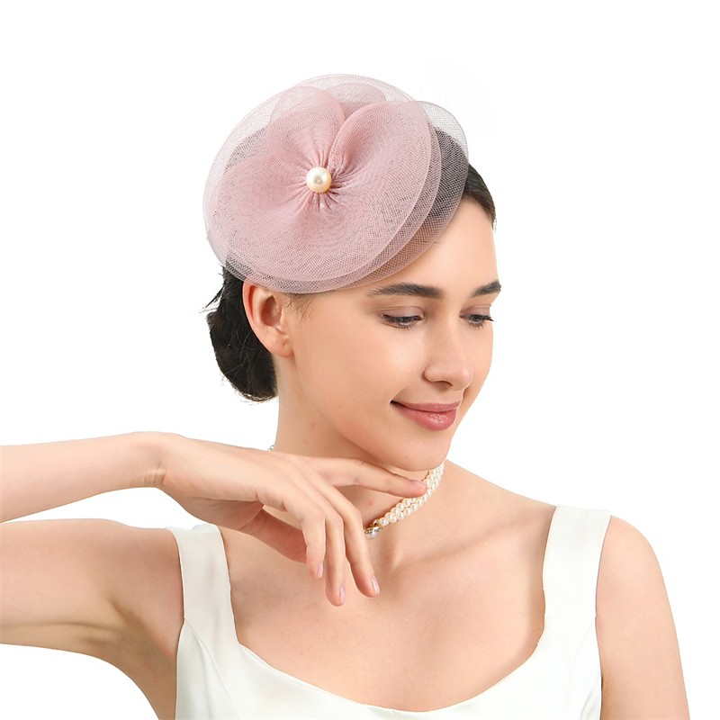 Headdress Fabric Fedora Hat Wedding Tea Party Horse Race Cocktail Elegant Vintage With Faux Pearl Tulle Headpiece Headwear