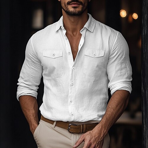 Per uomo Camicia Camicia di lino Camicia Estiva Abbigliamento da spiaggia Camicia con Bottoni Tinta unica Vacanza Streetwear Bianco Blu Verde Cachi Manica Lunga Colletto ripiegato Estate Primavera