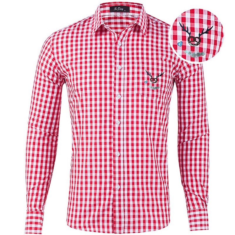Oktoberfest Check Pattern Lederhosen Shirt Pretzel Deer Print Bavarian German Wiesn Men's Carnival Beer Festival Traditional Style Cloth Shirt