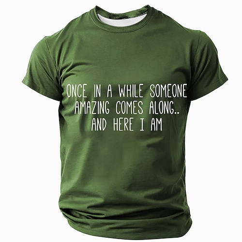 Humorvolles rotes Grafik-T-Shirt für Männer - 'Hin und wieder kommt jemand Erstaunliches vorbei... und hier bin ich' Kurzarm