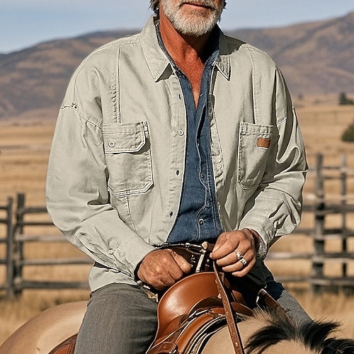 Per uomo Mimetico Camicia Western Manica Lunga Western Sport all'Aperto Primavera Autunno Collo ripiegato Cardigan con Bottoni Verde militare Blu Marrone Grigio