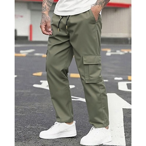 Herren Cargo-Hosen Hose Kordelzug Elastischer Bund Mehrere Taschen Einfach tragbar Outdoor Täglich Campen und Wandern Mode Klassisch Schwarz Armeegrün