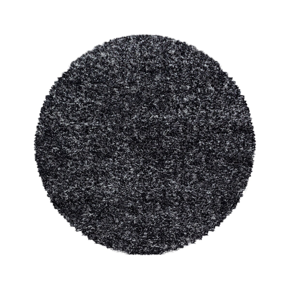 Carpetsale24 Runder Hochflor Teppich Ø 80 cm Anthrazit – Shaggy, Flauschig & Pflegeleicht, Meliert, Jute-Rücken für kleine Räume & Eingangsbereich