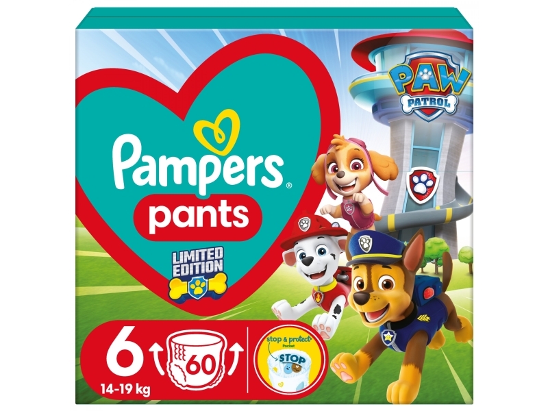 Pampers Active Baby Pants Windelhöschen - Dog Patrol Pass, Größe 6, 14-19kg, 60 Stück.