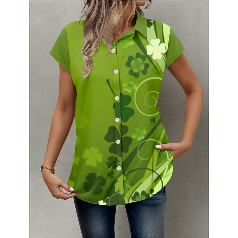 St. Patrick's Day Women's Shirt Graphic Shamrock Daily Short Sleeve Cap Sleeve Shirt Collar Long Tops Daily Grass Green Summer Spring