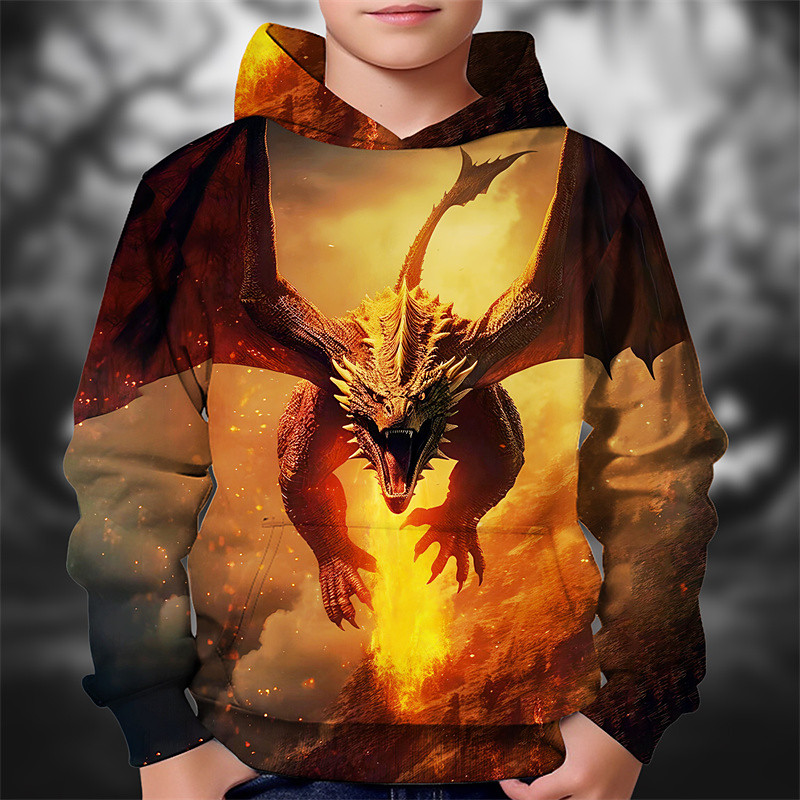 Halloween Boys' 3D Dinosaur Hoodie Long Sleeve Spring Fall Fashion Streetwear Kids 4-12 Years Hooded Outdoor Casual Daily Regular Fit
