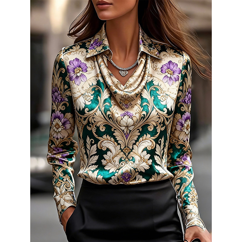 Women's Shirt Floral Elegant Vintage Classic Long Sleeve Cowl Neck Regular Tops Daily Work Holiday Print Draped Purple Spring Fall