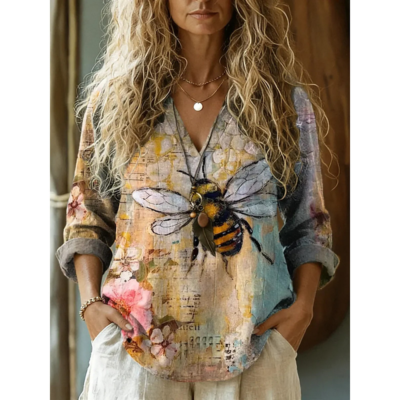 Women's Blouse Floral Graphic Vintage Daily Stylish Long Sleeve V Neck Long Tops Daily Holiday Print Green Khaki Summer Spring
