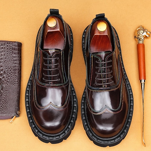 scarpe oxford da uomo in similpelle - modello coccodrillo con dettagli brogue, perfette per eventi formali e abbigliamento da lavoro