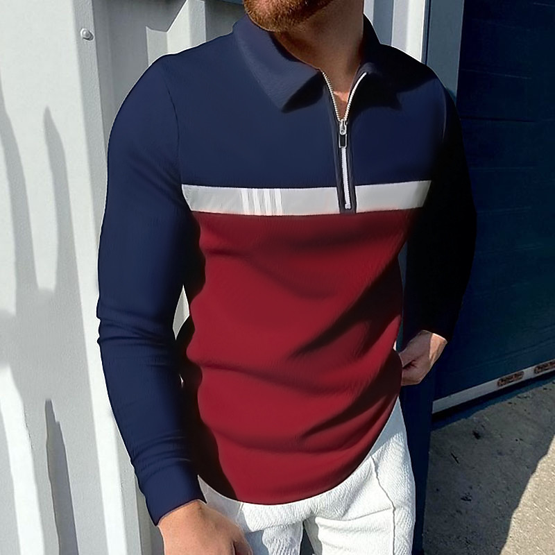 Men's Zip Polo Golf Shirt Business Daily Wear Quarter Zip Long Sleeve Fashion Classic Style Color Block Zipper Spring Fall Red Navy Blue Dark Green Dark Grey Zip Polo
