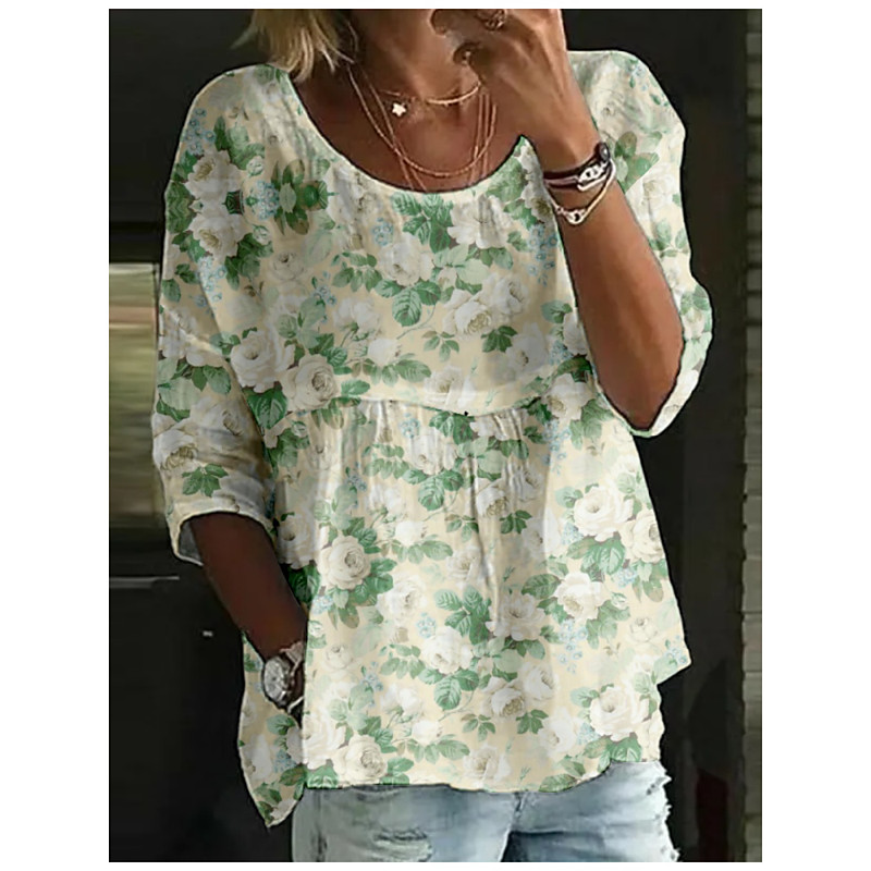 Women's Midi Dress Shift Dress Casual Daily Regular Fit Floral Graphic Half Sleeve Lapel Deep Green Blue Green Summer Spring