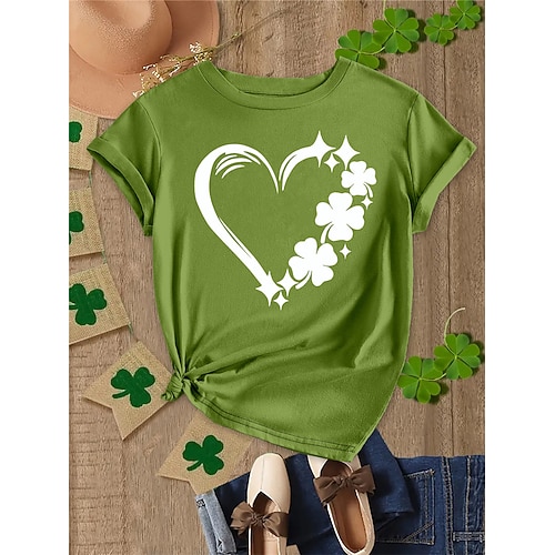 Maglietta da donna di San Patrizio Fortunata Cuore Shamrock Moda Basic Maniche Corte Collo a Giro Regolari Tops St. Patrick's Day Stampa Vacanze Verde Erba Estate
