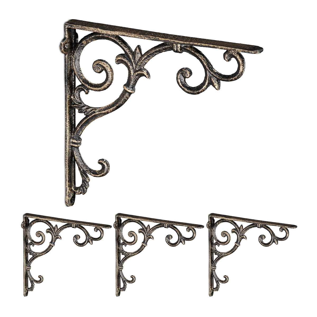 Relaxdays Regalwinkel, 4er Set, Gusseisen, antike Regalträger, Winkel Regalbretter, HxBxT: 24,5 x 4 x 24,5 cm, bronze