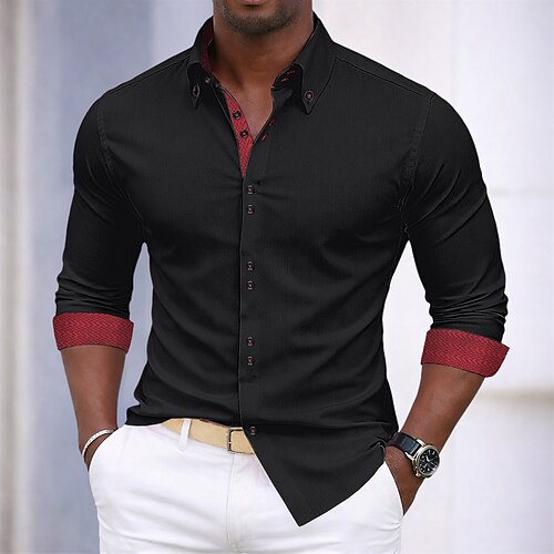 Per uomo Camicia elegante Camicia button-down Camicia a righe Camicia con Colletto A righe Matrimonio Lavoro Nero Bianco Rosso Blu marino Manica Lunga Colletto Abbigliamento