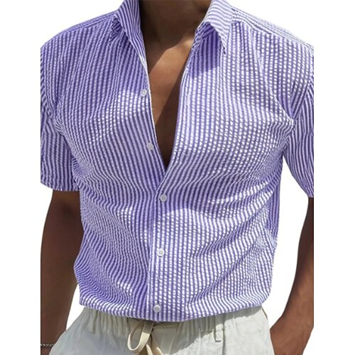Per uomo Camicia button-down Camicia casual Camicia di Seersucker Nero Giallo Verde chiaro Rosa Viola Manica Corta A righe Bavero Casuale Quotidiano Bottoni Abbigliamento Streetwear Casual
