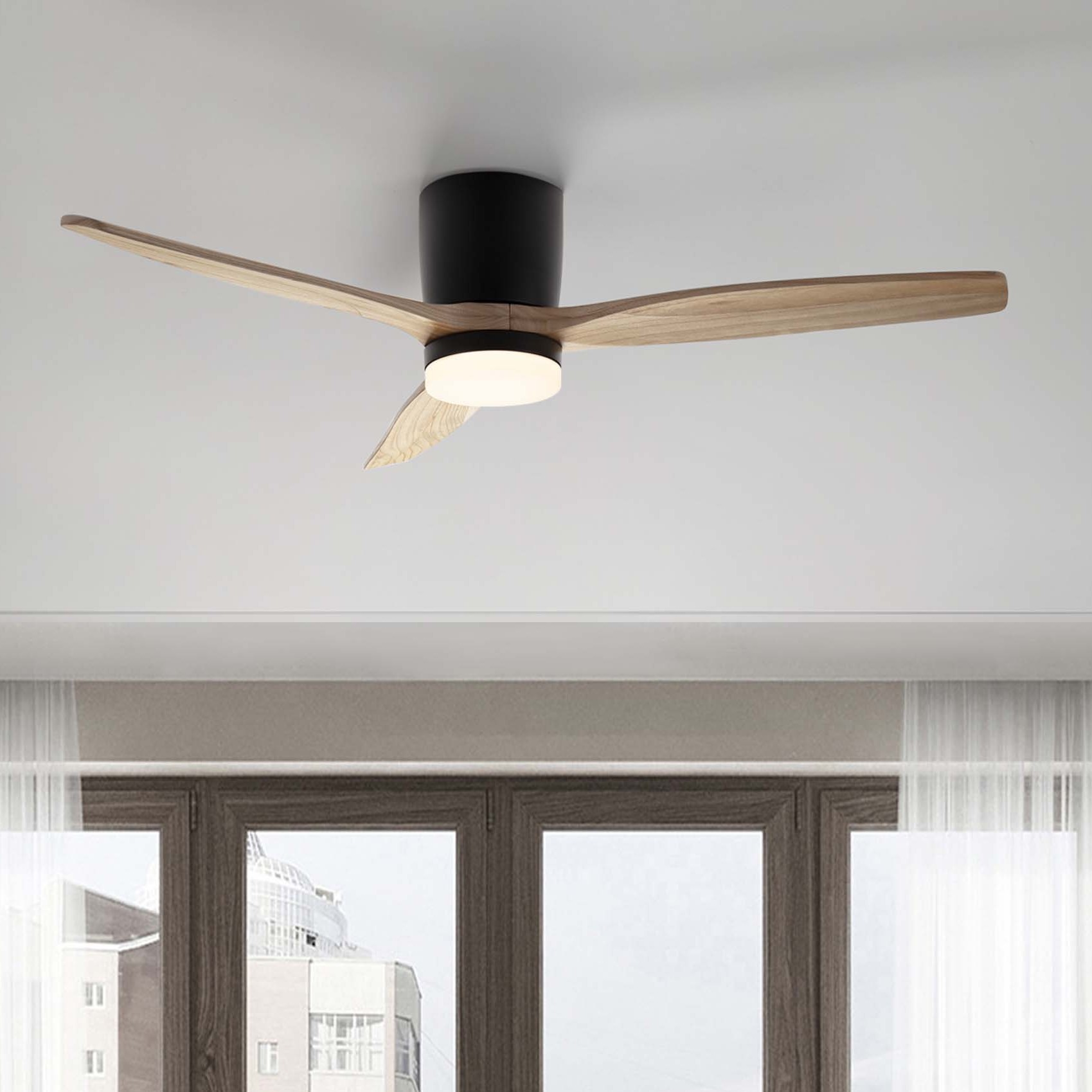 Nova Luce Aloa - ventilateur de plafond avec lumière et télécommande - Ø 132 x 27,5 cm - 18W LED inclus - noir sablé et bois naturel