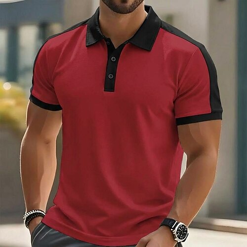 Per uomo Polo Maglia da golf Casuale Sportivo Classico Manica Corta Moda Cool Blocco di colori Bottoni Estate Primavera Primavera Autunno Vestibilità regolare Nero Bianco Borgogna Cachi Grigio