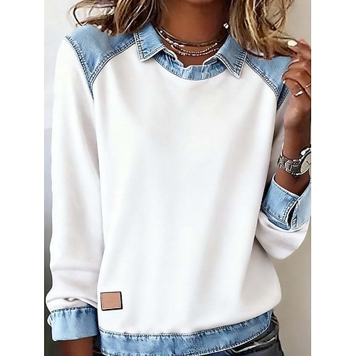 Per donna Blusa Blocco di colori Elegante Casual Manica Lunga Colletto a Camicia Top Regolari Quotidiano Patchwork Nero Bianco Giallo Rosso Arancione Primavera Autunno Inverno