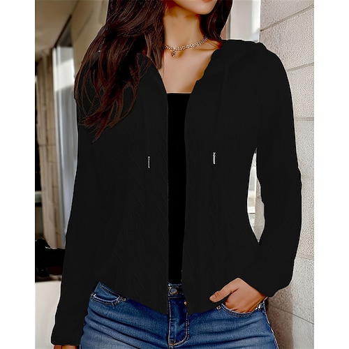 Per donna Felpe con cappuccio Semplice Elegante Caldo Moda Manica Lunga Con Cappuccio Top Regolari Casa Lavoro Streetwear Coulisse Cerniera Nero Bianco Vino Caffè Estate Primavera