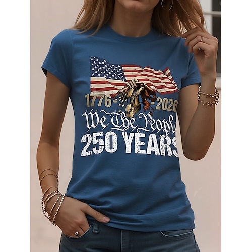 Giorno dell'Indipendenza Americana Per donna Maglietta Grafico Lettera Vintage Elegante Classico Manica Corta Girocollo Top Regolari Quotidiano Weekend Stampato Blu Nero Rosso Verde Estate Primavera