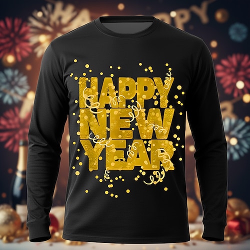 Capodanno Per uomo Buon anno Fuochi d'artificio Maglietta Manica Lunga maglietta Stampa 3D Girocollo Camicia Esagerato Designer Artistico Feste Streetwear Club Blu Nero Rosso Autunno Inverno