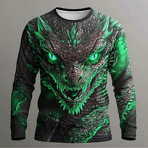 Herren Tiermotiv Lustig T Shirt Langarm T-Shirt 3D-Druck Rundhalsausschnitt Hemd Mode Basic Lässig Täglich Straße Blau Gelb Rote Sommer Frühling Bekleidung S M L XL XXL XXXL