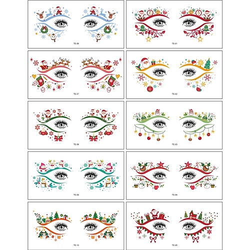 tatuaggi per il trucco degli occhi agli angoli di Halloween – 10 tatuaggi temporanei premium per il viso per le feste decorazioni natalizie