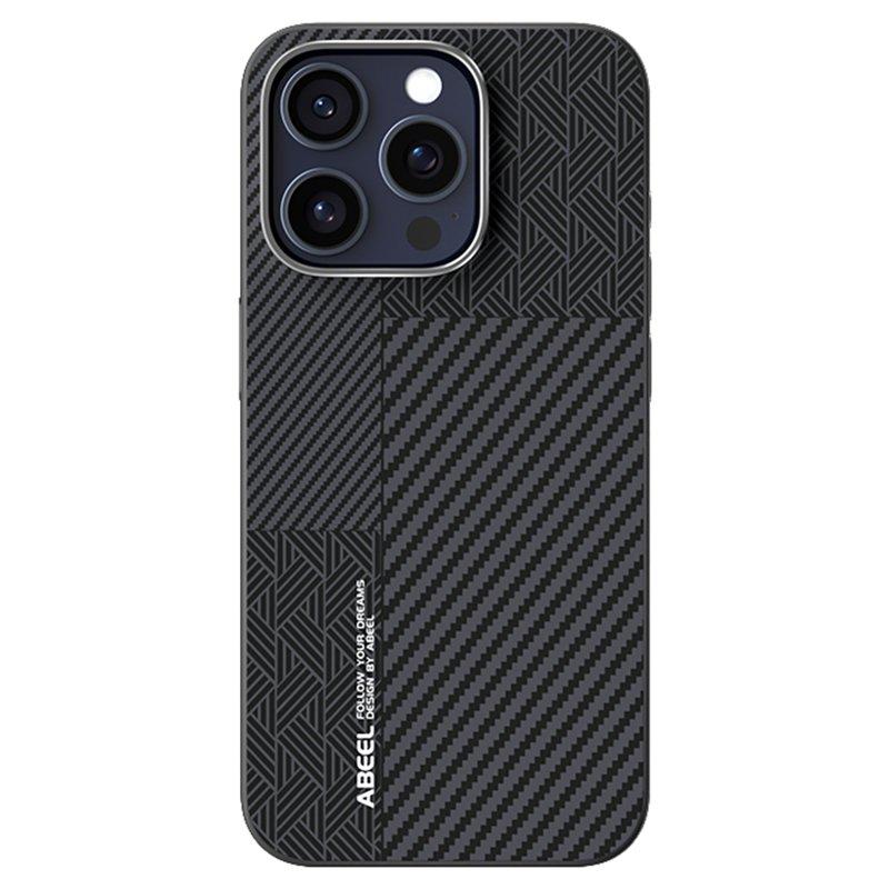 ABEEL Mobilskal till iPhone 15 Pro Max PC TPU Aluminium Läder - Textur 1