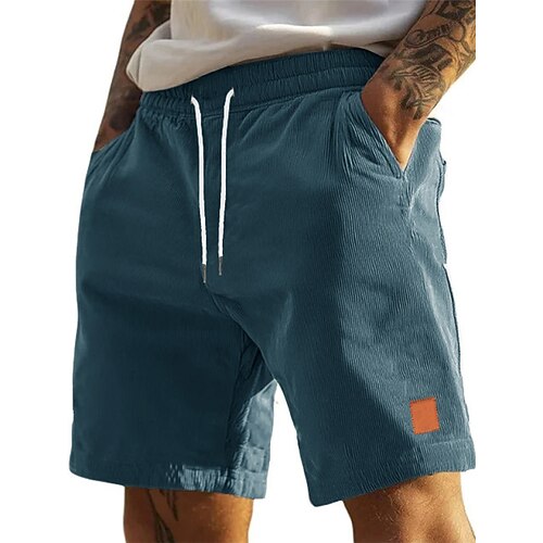 Per uomo Shorts Pantaloncini casual Pantaloncini di velluto a coste Tasca Elastico in vita Semplice Tinta unita Comodità Traspirante Sopra il ginocchio Casuale All'aperto Spiaggia Vacanza Moda Nero
