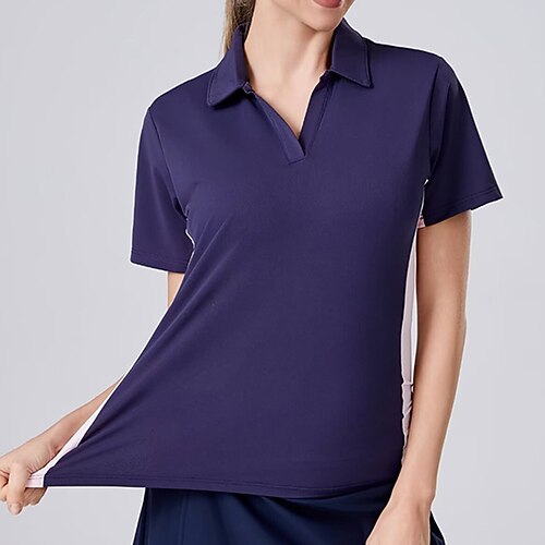 Per donna Patchwork Maglia atletica Polo da golf Canotta Maglia da tennis Manica Corta Elastico Traspirante Tennis Golf Pickleball Collo ripiegato Top Nero Bianco Rosa Abbigliamento da tennis