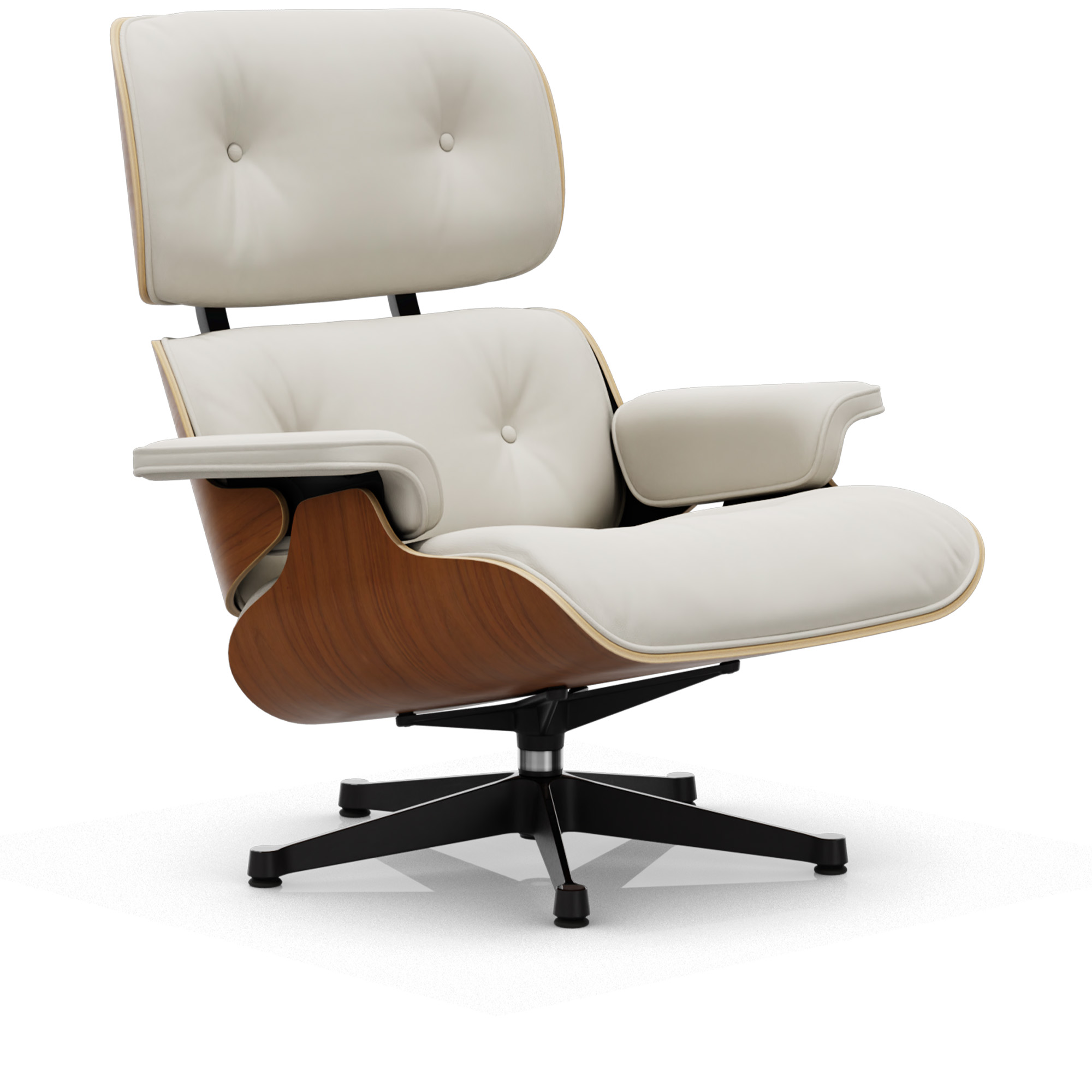 Vitra - Eames Lounge Chair Natural Walnut Leather Premium Snow 72 Polished Aluminium/Deep Black - Fåtöljer - Charles & Ray Eames - Läder/Metall/Trä