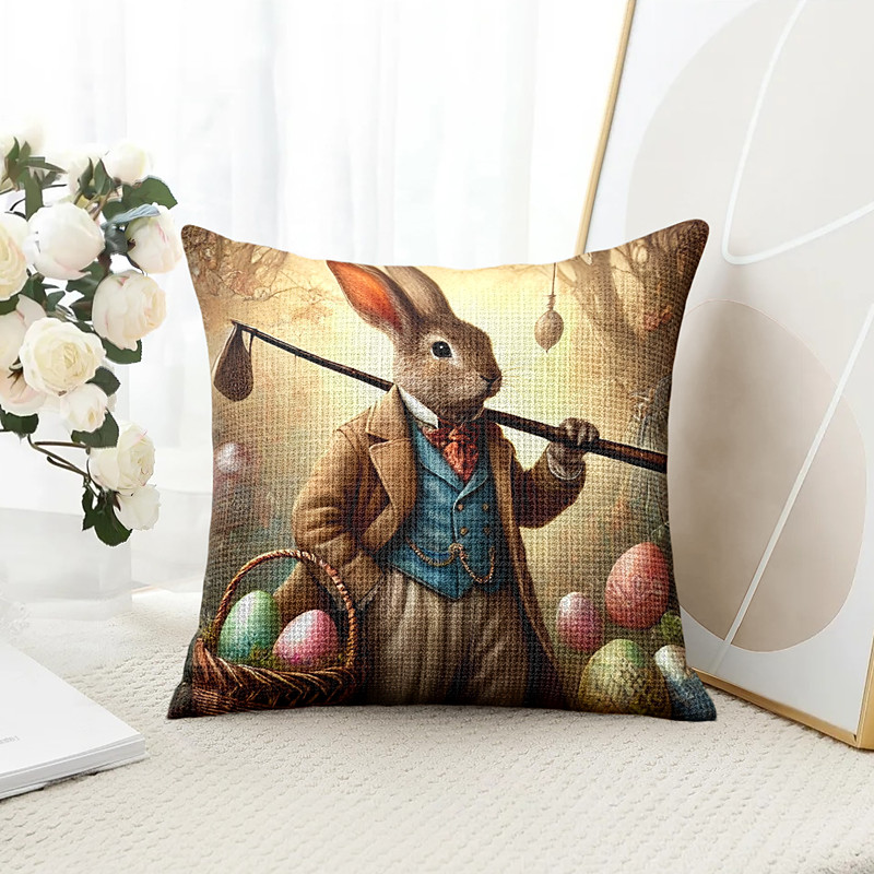 Vintage Easter Decorative Toss Pillows Cover 1PC Bunny Soft Square Couch Cushion Case Pillowcase for Bedroom Livingroom Sofa Chair