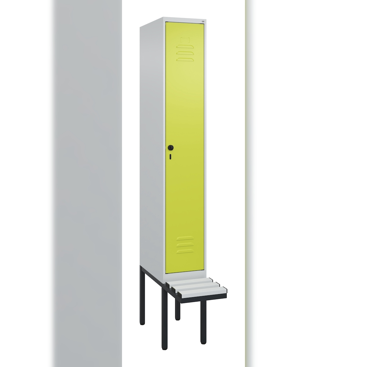 C+P Spind Classic PLUS, Kunststoff schwebende Sitzbank, 1 Abteil, HxBxT 212x30x82cm, Sicherheitsdrehriegel, Hellgrau/Clowngrün von PROREGAL