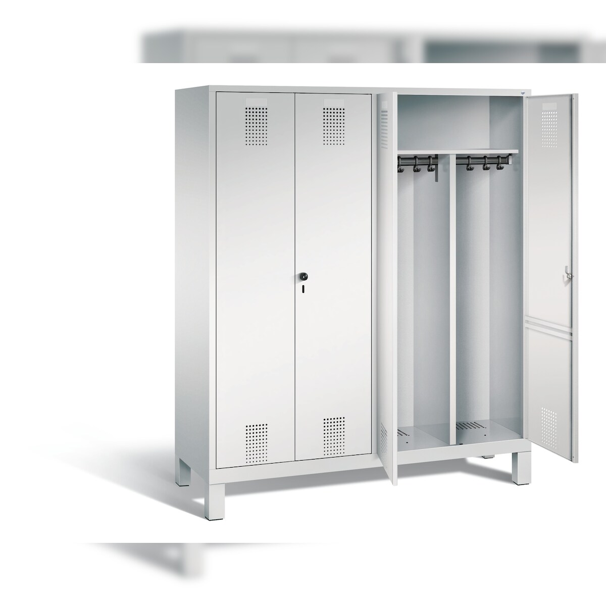 Spind Classic PLUS, 3 Abteile, lichtgrau / grau, B 1200 mm, mit Füßen, Zylinderschloss C+P