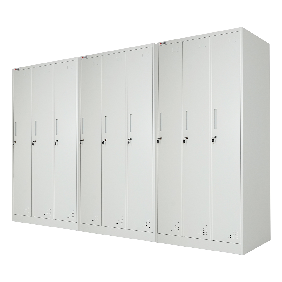 PROREGAL Mega Deal 3x Spind Schrank ELEPHANT Metall 3 Abteile 180x90x50cm Kleiderstange & Kleiderhaken Lichtgrau Spindschrank Kleiderschrank