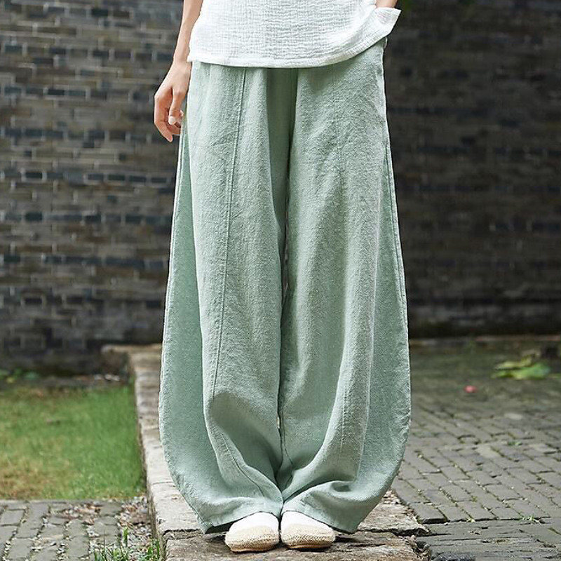 Women's Plus Size Cotton Blend Wide Leg Chinos Vacation Casual Lounge Full Length Natural Solid Color Pocket Baggy Micro-elastic Daily Vacation Holiday Black White Green Dark Blue Fall Winter Regular