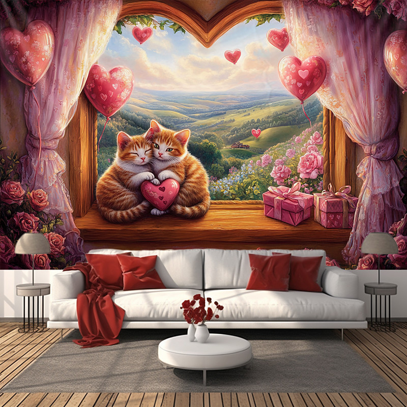 Wedding Decorations Backdrop Photograph Wall Hanging Large Tapestry Art Mural Decor Blanket Curtain Home Bedroom Living Room Decoration Heart Window