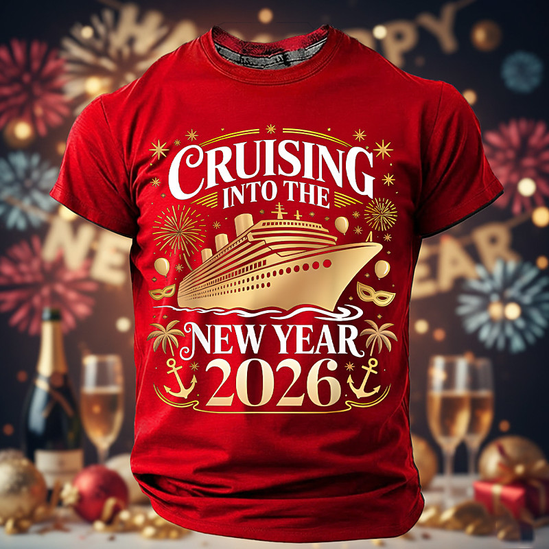 New Year Men's Happy New Year Fireworks Cruise Ship T Shirt Short Sleeve T shirt 3D Print Crew Neck Shirt Exaggerated Designer Artistic Party Street Club Blue 1# Black Red Fall Winter Clothing Apparel