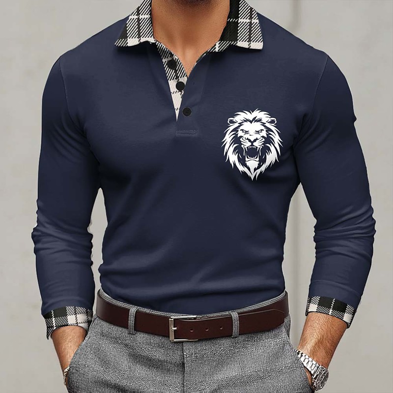 Men's Geometic Line Polo Long Sleeve Polo Shirts Collared Shirts Business Casual Business Athleisure Daily Wear 3D Print Buttons Spring Fall Winter Lake blue Red Blue
