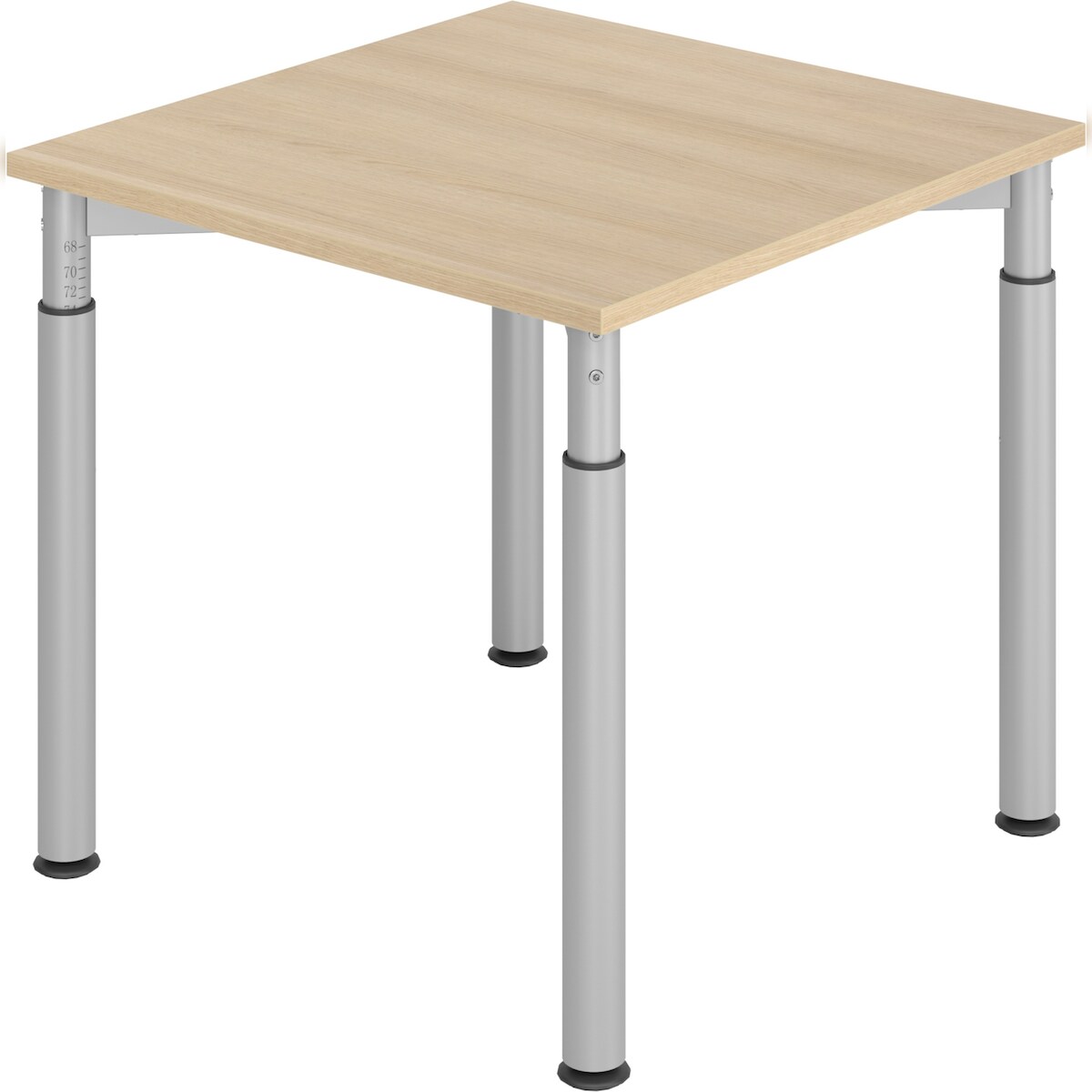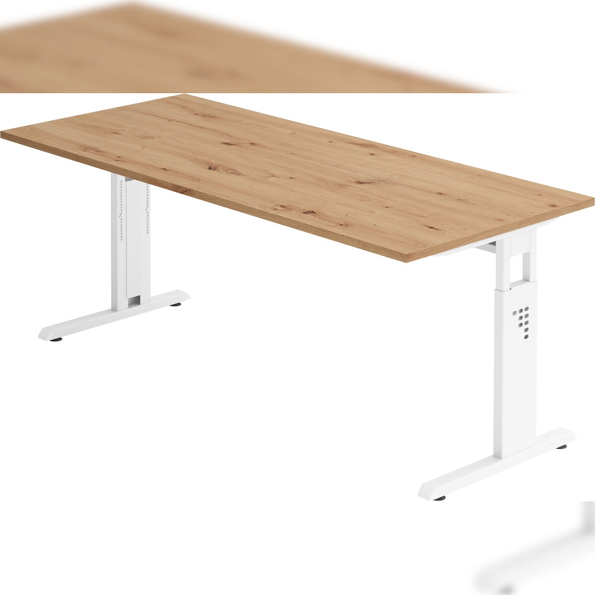 bümö höhenverstellbarer Schreibtisch O-Serie 180x80 cm in Asteiche, Gestell in weiß - großer PC Tisch für's Büro manuell höhenverstellbar,