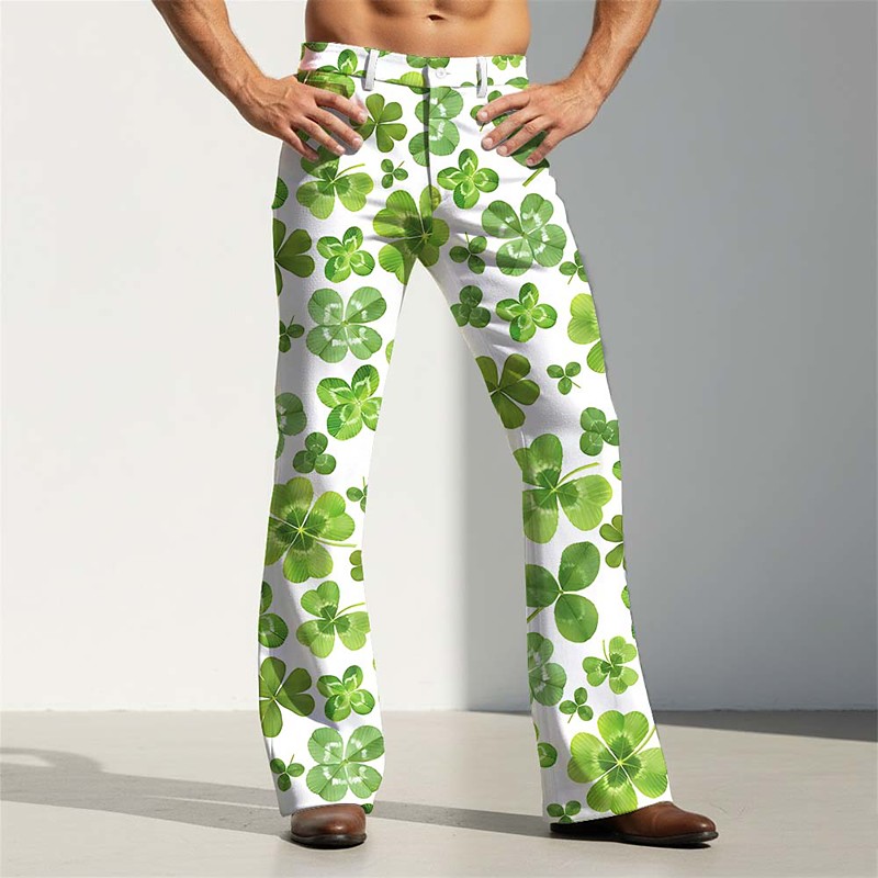 St. Patrick's Day Men's Four Leaf Clover Shamrock Trousers Disco Pants 60s 70s Bell Bottoms Mid Waist Vintage Retro Holiday Side Pockets Flared Leg Pants Trousers Summer Spring 3D Print White 1 White