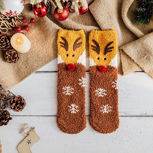 calzini natalizi da donna, calzini caldi e accoglienti in pile corallo, calzini invernali spessi e morbidi, coppia regalo coordinato per la famiglia, calzini antiscivolo per pavimenti interni