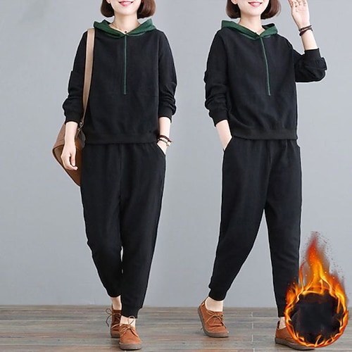 Per donna Tuta da Ginnastica Pantaloni da Tuta Felpa pullover Tasca con cerniera Tinta unita Completo Abbigliamento Autunno Nero Giallo Spandex Allenamento Athleisure Corsa Calore Termico Antivento