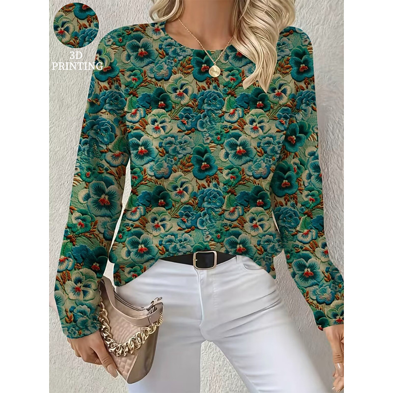 Women's T Shirt Floral Fashion Stylish Casual Long Sleeve Crew Neck Regular Tops Daily Weekend Vacation Wear Print Yellow Red Dark Green Purple Green Summer Spring Fall