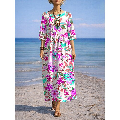 Per donna Abito maxi Abito a Tubino Vacanza Casual Spiaggia Spiaggia Uscire Vestibilità comoda Floreale Grafico Manica 3/4 Girocollo Blu Rosso Viola Verde Estate Primavera