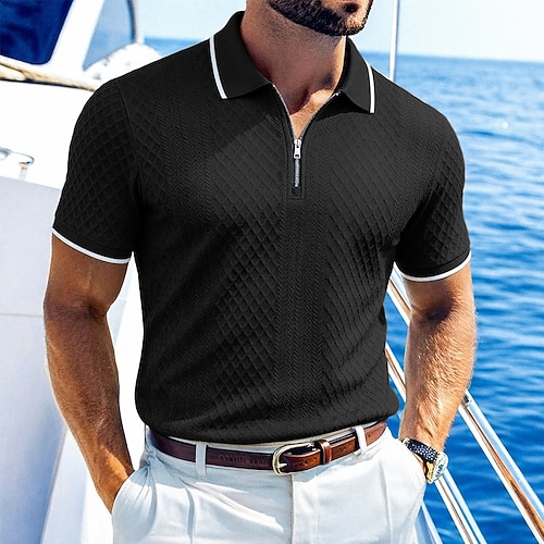 Per uomo Polo Testurizzato Casuale Streetwear Bavero Manica Corta Essenziale Moderno Geometrico Semplice Leggero Bottoni Estate Primavera Vestibilità comoda Nero Bianco Vino Blu marino Verde scuro