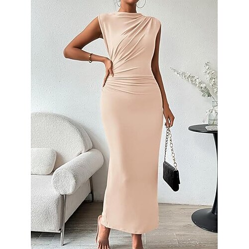 Per donna Abito maxi Abito da Ballo Vestito da Festa Vestito Casual Abito da Cocktail Elegante Moda Moderno All'aperto Festa serale Feste Vestibilità regolare Semplice Senza Maniche Collo Alto Nero