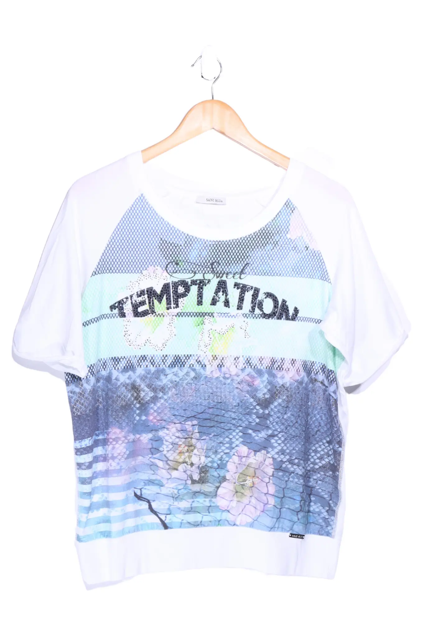 SANI BLU Damen T-Shirt Gr. 40 Mehrfarbig Temptation Print