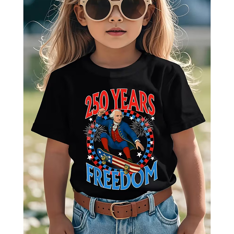 100% Cotton Kids Boys' Black White Graphic 250th Anniversary Kid's American US Flag T shirt Blouse Crew Neck Short Sleeve Outdoor Dailywear Fashion Streetwear Designer Printing Summer